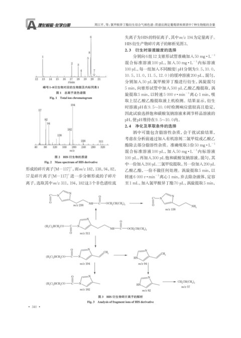 离子,选取其中m/z 311,194,182这3个非色谱柱流 至1 mL,加入氯甲酸异丁酯70 μL,涡旋提取5 min,