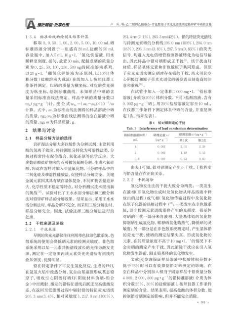 酸,因此在溶样时加入少量氟化物,可分解样品中的 由表1可知,铅对硒测定产生正干扰,干扰程度