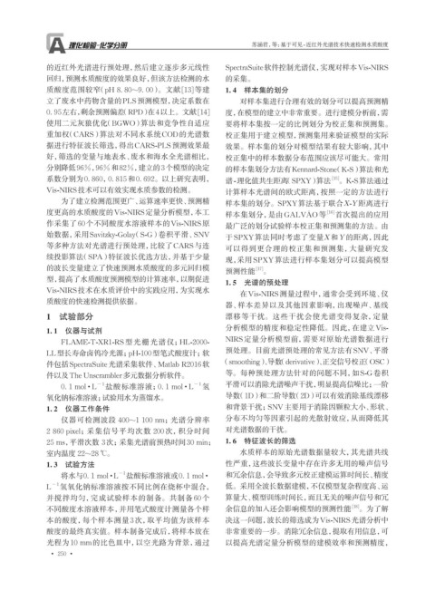 度更高的水质酸度的Vis-NIRS定量分析模型,本工 样本集划分,是由GALVÃO等 [16] 首次提出的应用
