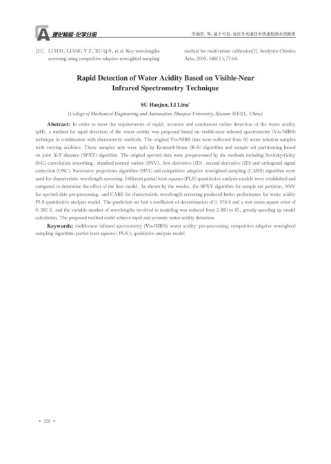 (pH), a method for rapid detection of the water acidity was proposed based on visible-near infrared spectrometry (Vis-NIRS)