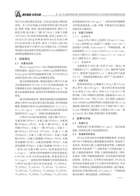 型PFASs同时测定的要求,尤其是长链化合物回收 的质量浓度均为2 000 μg · L −1 ,使用时用甲醇稀释