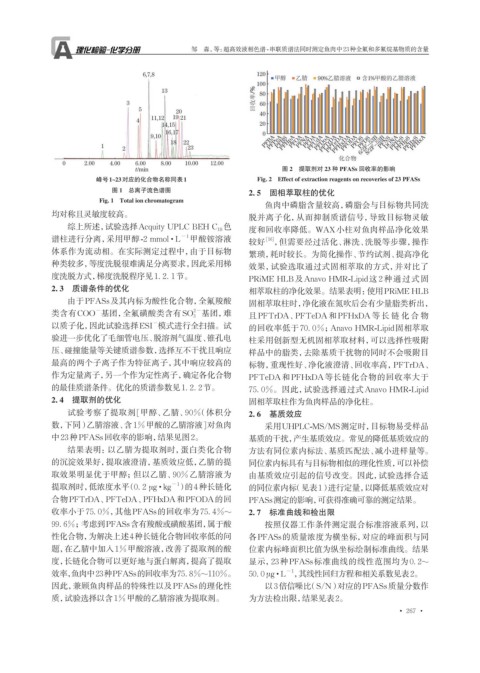 中23种PFASs回收率的影响, 结果见图2。 基质的干扰,产生基质效应。常见的降低基质效应的