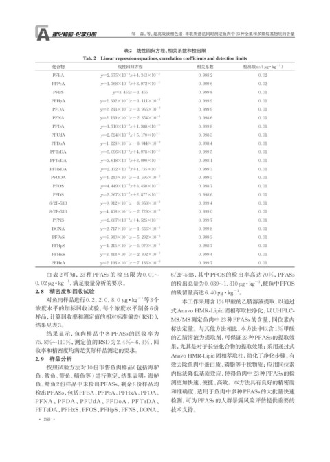 鱼、鲭鱼2份样品中未检出PFASs,剩余8份样品均 测更加快速、便捷、高效。本方法具有良好的精密度