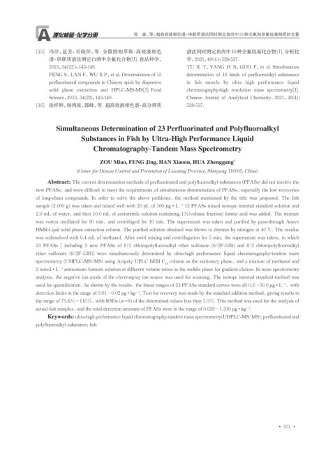 FENG S,LAN F,WU X P,et al. Determination of 15 determination of 16 kinds of perfluoroalkyl substances