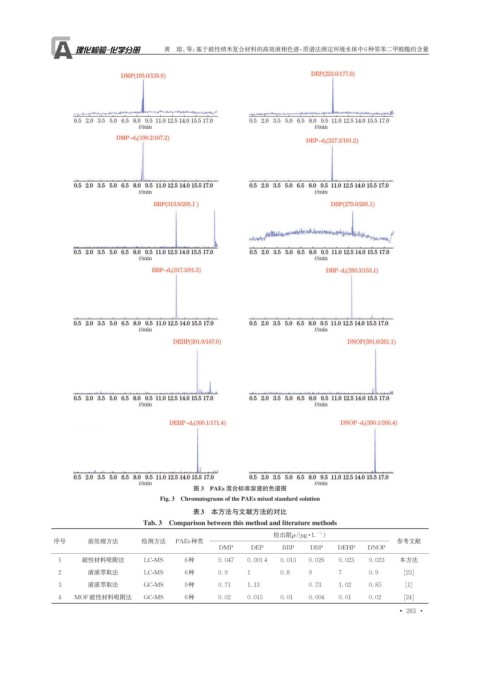 黄 琼,等:基于磁性纳米复合材料的高效液相色谱-质谱法测定环境水体中6种邻苯二甲酸酯的含量