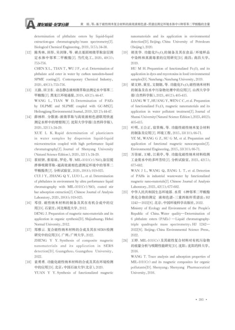 (Natural Science Edition),2020,32(1):24-29. [22] 万佳丽,王晴,江莉亭,等. 功能化磁性纳米材料检测
