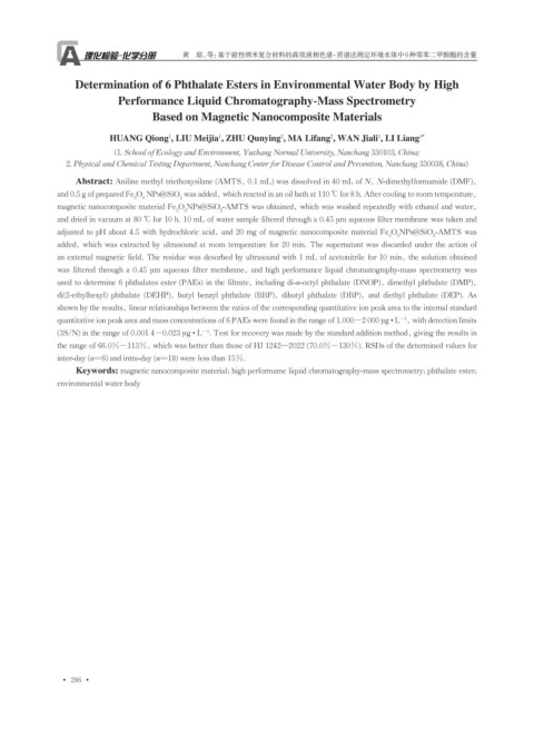 黄 琼,等:基于磁性纳米复合材料的高效液相色谱-质谱法测定环境水体中6种邻苯二甲酸酯的含量