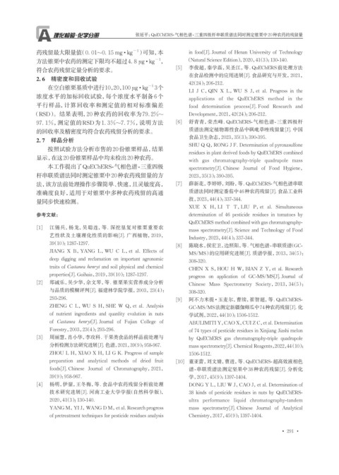 97. 1%,测定值的RSD为 1. 3%~7. 7%,说明方法 [6] 舒青青,荣杰峰. QuEChERS-气相色谱-三重四极杆