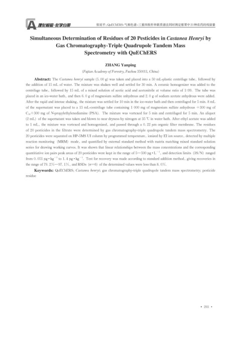 张延平:QuEChERS-气相色谱-三重四极杆串联质谱法同时测定锥栗中20种农药的残留量