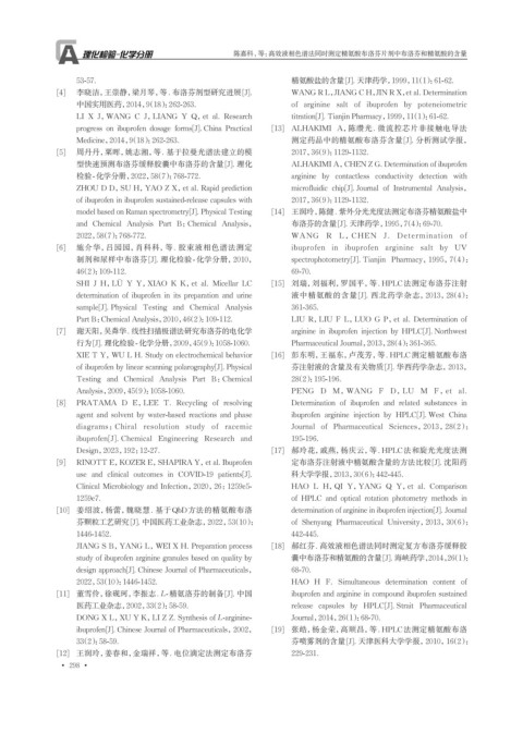 ibuprofen[J]. Chinese Journal of Pharmaceuticals,2002, [19] 张皓,杨金荣,高顺昌,等. HPLC法测定精氨酸布洛