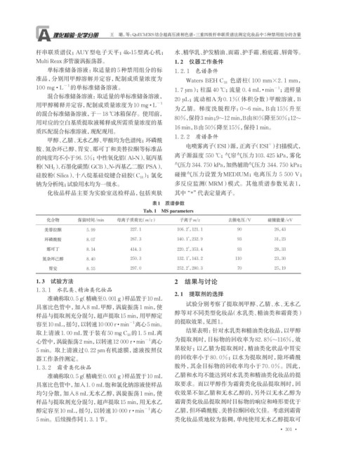 5 min。后续操作同1. 3. 1节。 类化妆品质地较为黏稠,单纯使用无水乙醇提取可