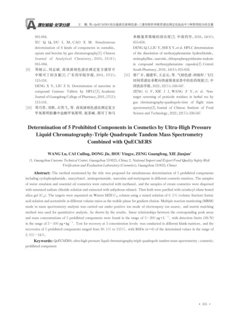 Keywords: QuEChERS; ultra-high pressure liquid chromatography-triple quadrupole tandem mass spectrometry ; cosmetic;