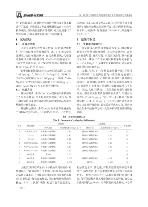 墨坩埚),二次氢结果几乎归零,与5号样品所得测 型 [13] ,结果表明,铝合金中易扩散氢占比与合金成分