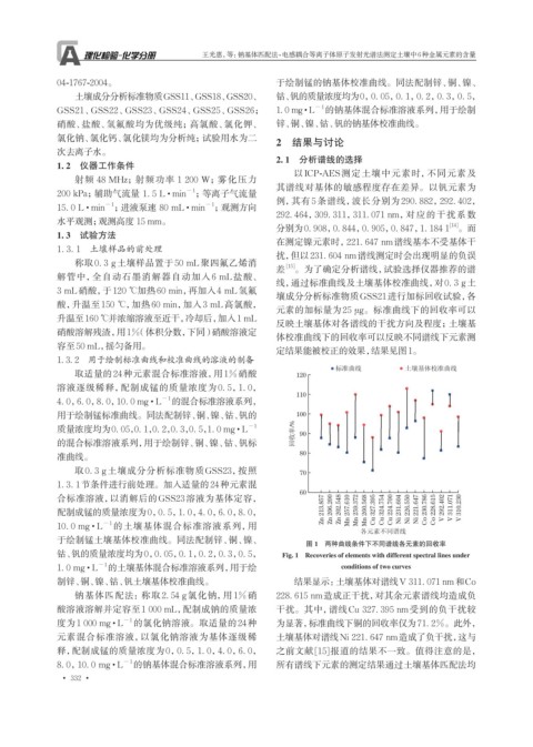 8. 0,10. 0 mg · L −1 的钠基体混合标准溶液系列,用 所有谱线下元素的测定结果通过土壤基体匹配法均